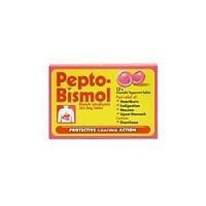 Pepto-Bismol Chewable Tablets contain 262mg of Bismuth Subsalcylate when ingested help to releive symptoms of nausea, heartburn, indegestion, stomach upset and diarrhea.