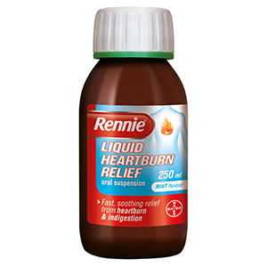 Rennie Peppermint Liquid Heartburn Relief provides fast, soothing relief from heartburn and indigestion. The liquid forms a protective layer on top of the stomach contents to prevent stomach acid escaping into the food pipe, which causes pain and discomfort. Can be taken day or night for fast relief. Suitable for use during pregnancy and breast-feeding – as many as 8 out of 10 women experience indigestion at some point during their pregnancy. Sugar-free. 250ml size.